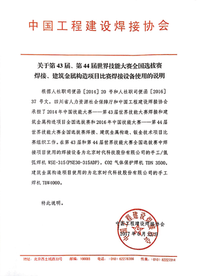 世界技能大賽全國選拔賽使用焊接設備情況說(shuō)明
