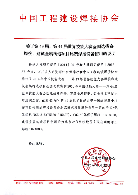 關(guān)于第43屆、第44屆世界技能大賽全國選拔賽焊接設備的使用情況