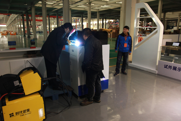 大會(huì )開(kāi)始的第一天非濟南區域的同仁們在產(chǎn)業(yè)領(lǐng)導的帶領(lǐng)下分幾組參觀(guān)了規模宏大的焊機工業(yè)園。工業(yè)園廠(chǎng)房給大家的第一感覺(jué)就是寬敞、明亮、干凈,辦公環(huán)境安靜、整齊有序。通過(guò)領(lǐng)導的講解,大家了解了焊機生產(chǎn)的全過(guò)程,包括基礎的鈑金加工、線(xiàn)路板制作以及組裝調試,打包入庫等諸多環(huán)節。一塵不染的新插裝中心、全自動(dòng)數字化料庫、巍峨的立體庫房及有條不紊的噴涂流水線(xiàn)吸引著(zhù)大家興奮的目光。焊接工業(yè)園中的焊接培訓學(xué)校、工藝實(shí)驗室和新展廳讓大家耳目一新,這些設施不僅豐富了焊接工業(yè)園的職能和功能,還提升了工業(yè)園的整體形象。會(huì )議期間不少時(shí)代同仁都紛紛到時(shí)代新展廳中觀(guān)摩新型展品,并合影留念。